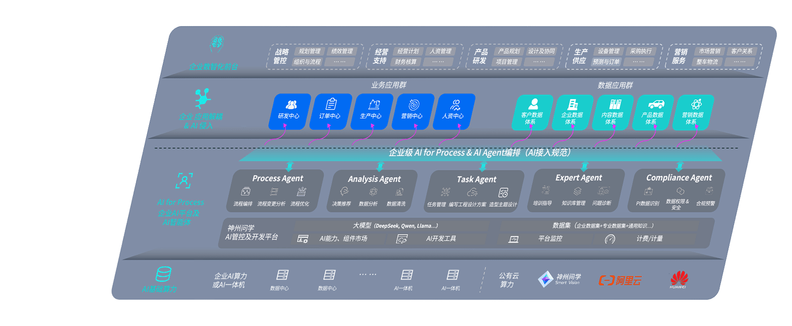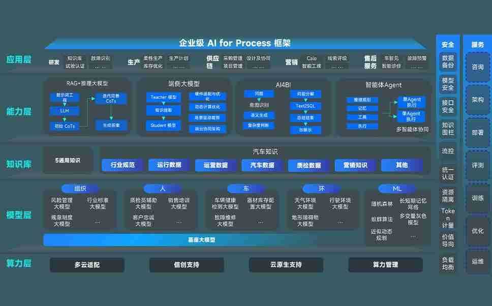 端到端的一站式AI工作空间深度融合了从企业战略规划到日常经营的全流程业务板块,,,定向解决车企内部领域多、、、部门多、、、、链条长、、场景碎片化等难题,,,支持车企快速构建以AI为核心的生产力写作体系,,,实现任务执行与AI能力的无缝集成与交互